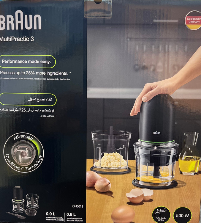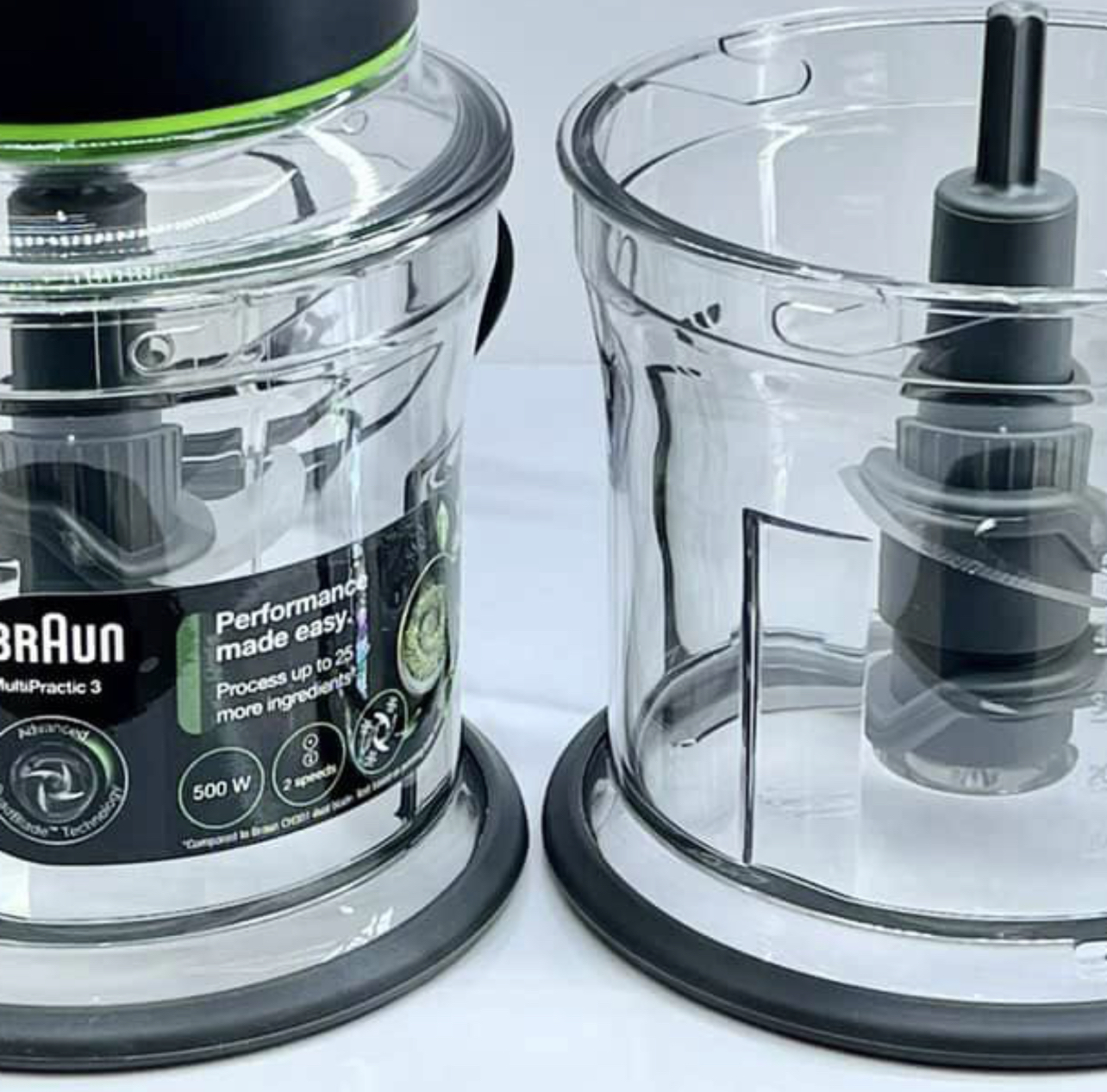 خردکن براون مدل CH3013 وسیله کاربردی برای برش های اصولی دوکاسه با گنجایش کافی بسیار کارامد با تیغ های کارامد وتیزوضد زنگ از جنس آستیم گلایس با دو کاسه به گنجایش 500 میل و900 میل قدرت کافی کارامد حتی برای پودر کرد یخ بکار بردن دو تیغ چهار عددی درهر کاسه بطور جداگانه مزایای این خردکن به دوکاسه بودن آن است که میتواند هم به صورت یدک و هم دوکاسه هم زمان برای بالا بردن سرعت کار برای رسید به غذای ایدال استفاد و بهر برد جنس بدنه دستگاه از پلاستیک تخصصی وباکیفیت نشکن بکار رفت است استفاد آسان فقط با انجام یه لمس فشاری به محصول برای برش پودر کرد ایدال شاهکاری از شرکت براون ویژگی بارزی که محصول را ممتاز میکند شستشو ی آسان در ماشین ظرفشویی